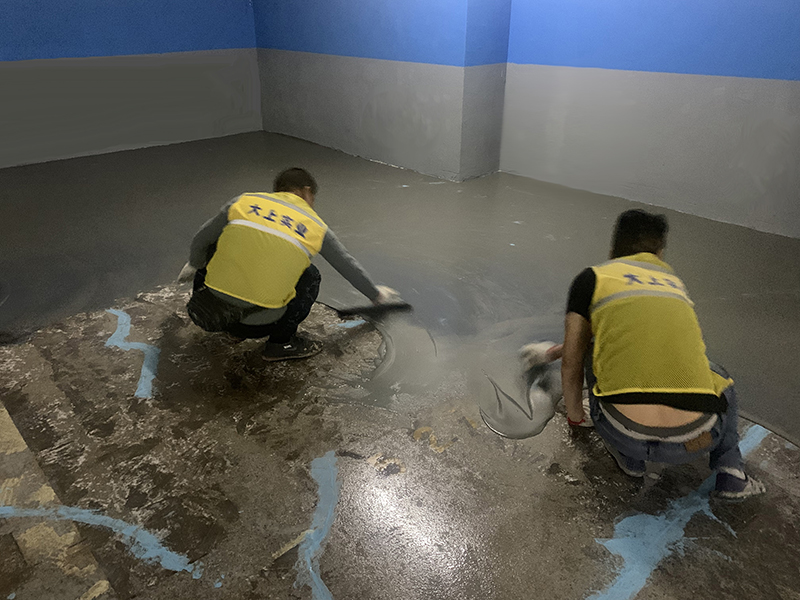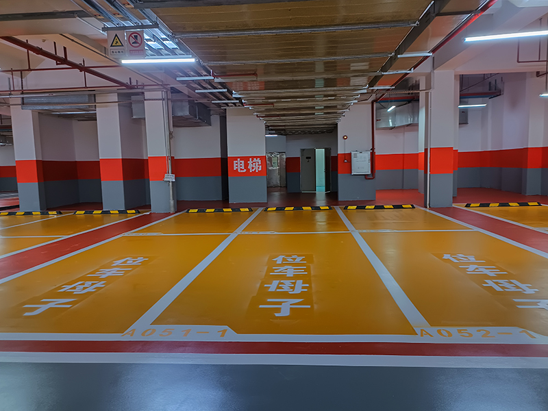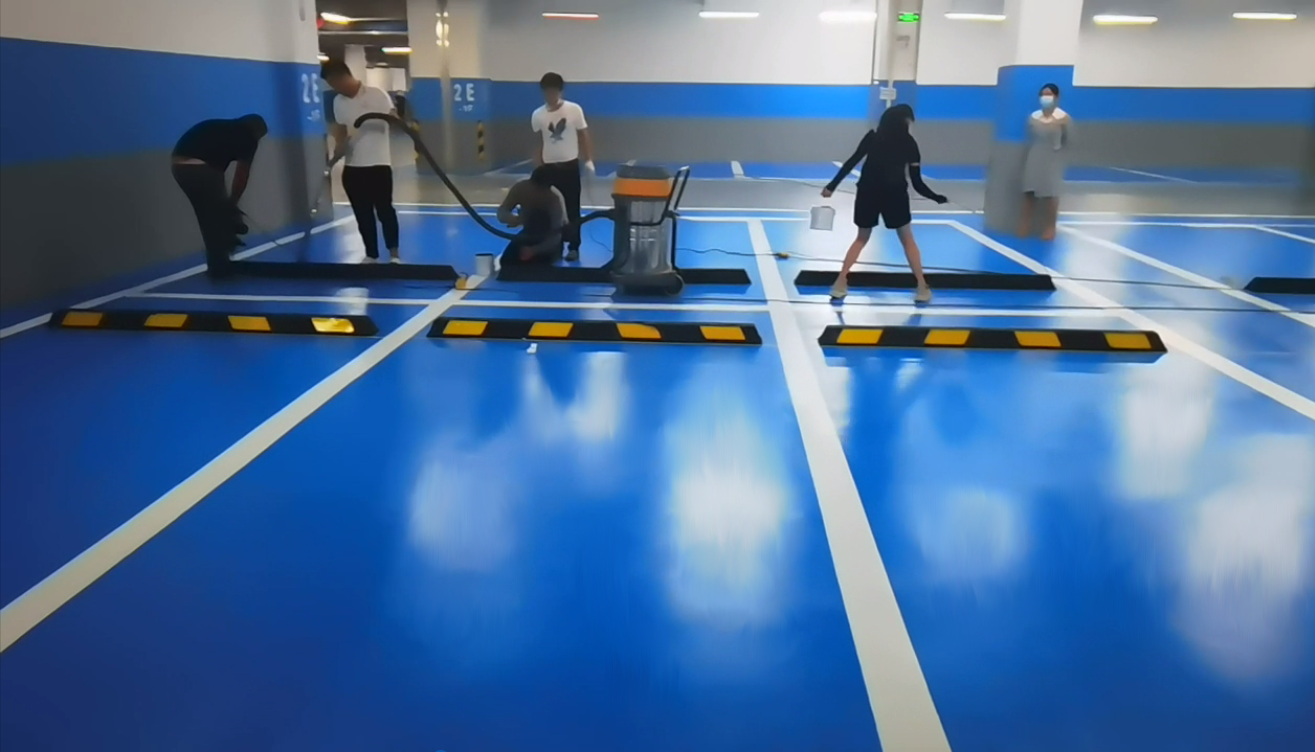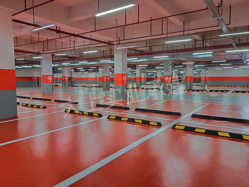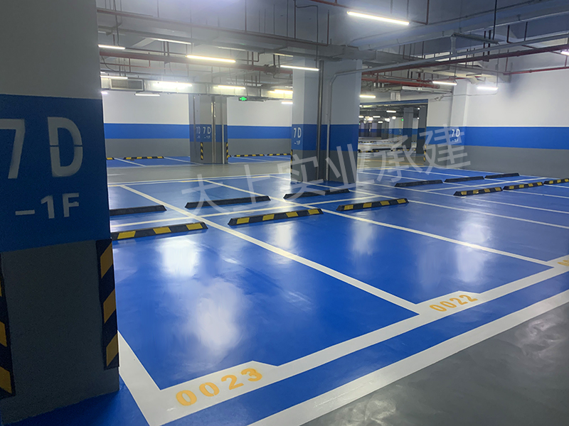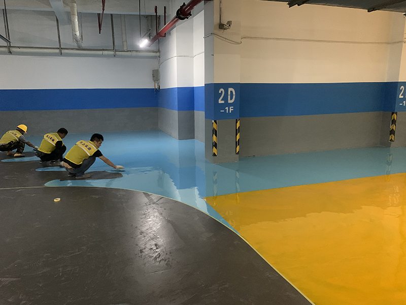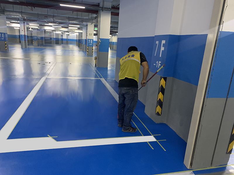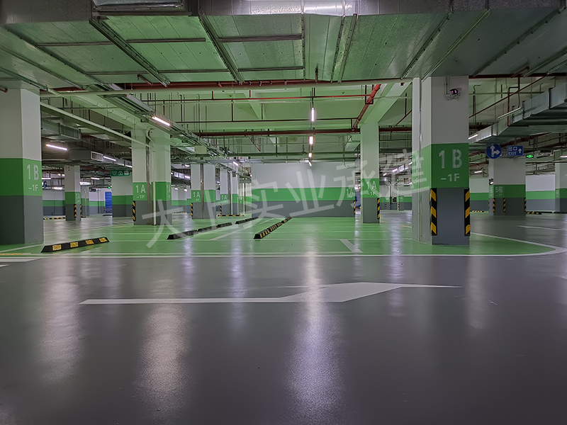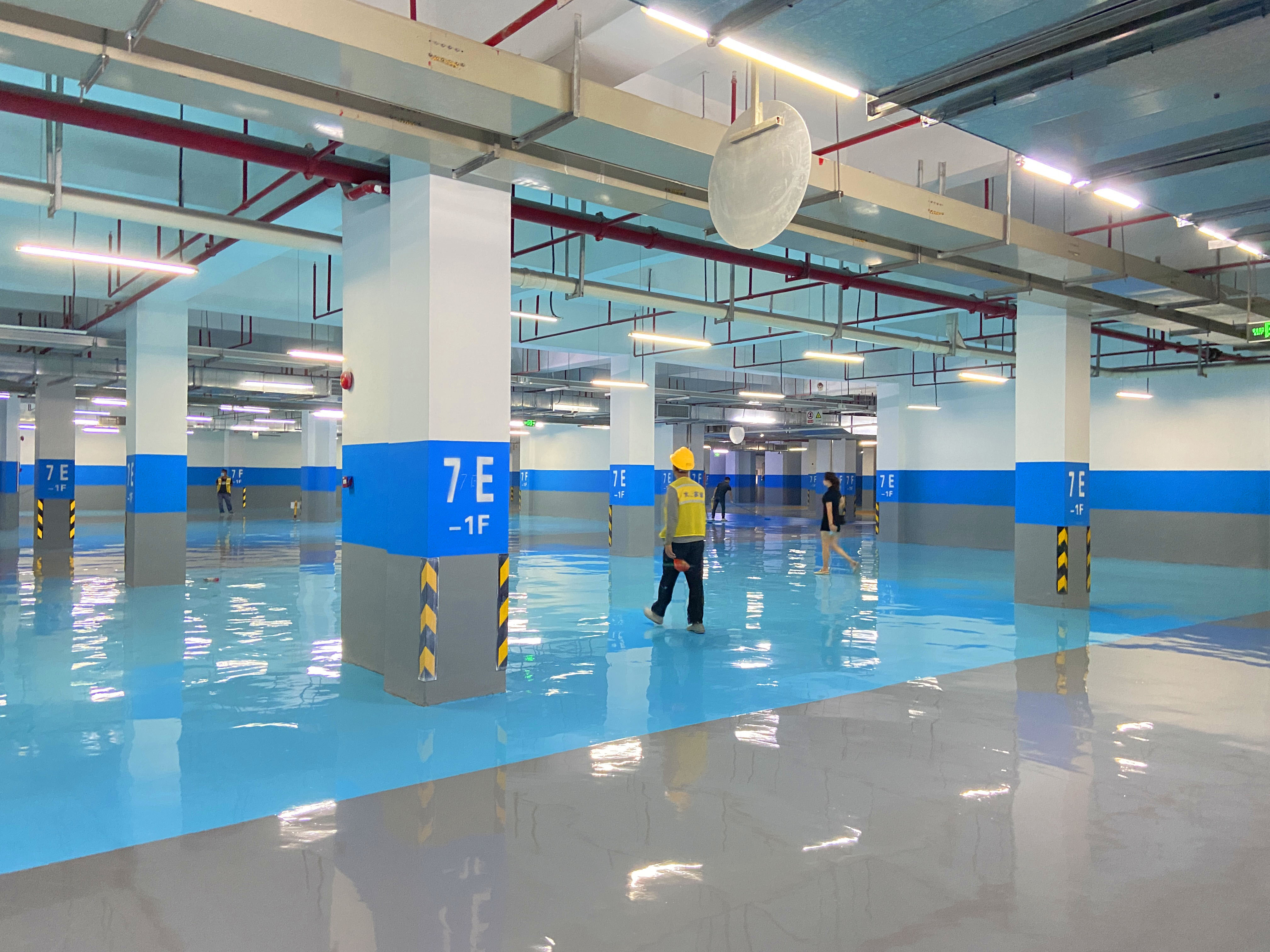 4萬多平方大型地下停車場水泥地面升級為環氧地坪地面工程,施工現場