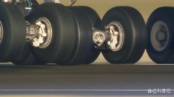 局部畫面來看,這么多輪胎支撐一架飛機的起降,還是很穩固的。但是把畫面放大來看,就顯得飛機輪胎是這樣的“嬌小”。