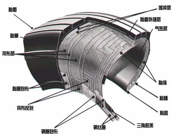 (子午線航空輪胎結構示意圖 關偉平,2016)