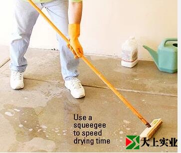 使用長柄酸刷,重復灑水,擦洗,直到整個地板都被酸蝕。沖洗三遍以沖洗酸殘留物。讓地板干燥。