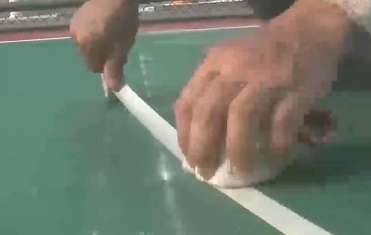 面漆層施工分為:標(biāo)記界線、滾涂、打磨、清掃、修補面層和邊角等;
