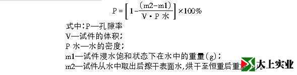 (2)孔隙率。對(duì)于硬化后透水混凝土的孔隙率假定連通孔隙體積占絕大多數(shù)。因此我們采用靜水力學(xué)方法進(jìn)行測定。將試件在水中浸泡24h后,在水中測試試件的質(zhì)量m1;然后將試塊烘干至恒重后重量,測其質(zhì)量m2;根據(jù)公式計(jì)算計(jì)算混凝土孔隙率P: