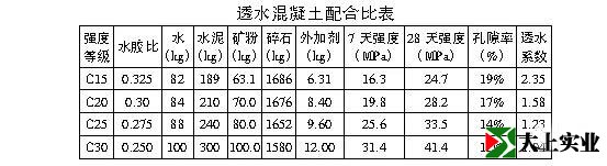 根據(jù)以上試驗(yàn)結(jié)果比較分析得出透水混凝土配合比見下表。