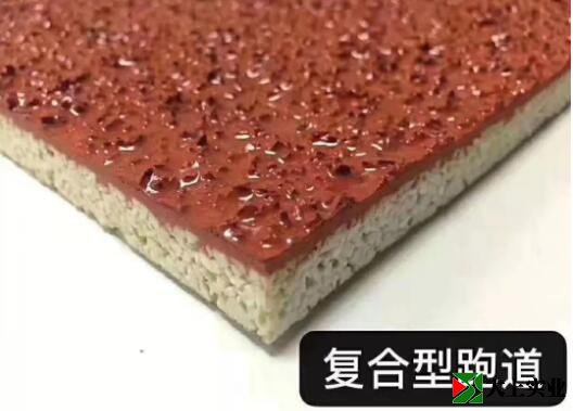 復合塑膠跑道材料采用兩層粘接劑,底層與透氣跑道相同,彈性橡膠粒子和聚氨酯膠粘劑通過鋪裝設備制成緩沖彈性層,厚度約10 mm,表層膠粘劑鋪設2~3mm厚的聚氨酯砂漿,EPDM橡膠顆粒作為磨損表層。基層是由單組分膠黏劑和彈性橡膠顆粒結合而成的,這是一種環保的產品。具有透氣功能,在高溫下,地基產生的蒸汽釋放很快,蒸汽壓力不能積聚,不會產生氣泡現象,滿足專業要求,彈性好。EPDM顆粒被用于表面層,使其具有較高的抗紫外線能力。實踐證明,它可以使用十多年,不會褪色。