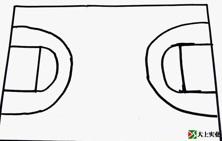 首先畫一面。籃球場每一側(cè)都有兩個半圓。從外線繪制并向中心方向移動。確保將左側(cè)連接右側(cè)。