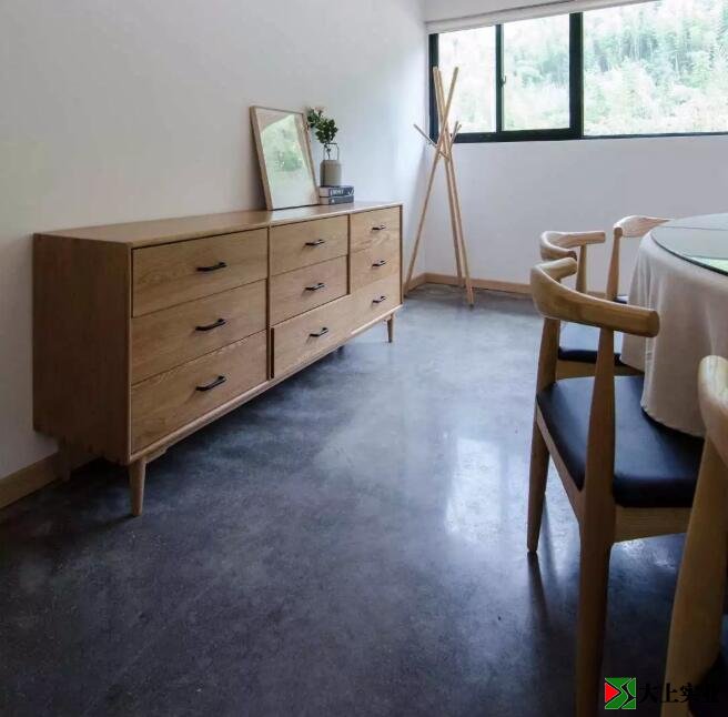 密封固化劑并不像自流平一樣是一種需要占用厚度的面層材料,而是一種藥劑,一般用于混凝土地面,來增加混凝土的強度硬度密度,因此也叫致密劑。使用密封固化劑后的地面硬如鋼板,能使混凝土形成一個致密的整體,我們常說的拋光混凝土就是通過密封固化劑致密以后,再用研磨工具打磨拋光后形成的地面,國內多數宜家家居的家具自提區(qū)地面就是這個材料。因此這個材料多數用于有耐磨需求的工業(yè)廠房、倉庫、車間、地下停車場等。一般廠家也拒絕承接小型空間或住宅空間。我們的工作室地面用的就是這個材料,不過由于現(xiàn)場施工隊缺乏經驗,基層處理沒有達到工藝要求,因此導致最終效果不太理想。