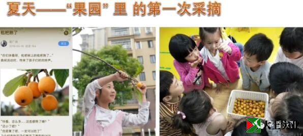 實(shí)用性添加。根據(jù)一年四季綠植的生長特點(diǎn),努力實(shí)現(xiàn)四季都有特色綠植。我們種植了櫻花、海棠、紫藤、桂花、凌霄,還有梨樹、桃樹、枇杷樹、柚子等,為幼兒的探究性學(xué)習(xí)和主題課程實(shí)施提供支持。2019年的春天,園區(qū)猶如第一次穿上了春天的衣裳,孩子給不同的樹畫名片,在樹下寫生,留下春天的美景。