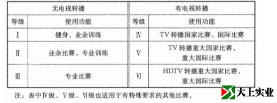 對這個問題感興趣的朋友,可以結(jié)合自身體育場館的使用需求來對照下表進(jìn)行了解。我國對體育燈光照明從大的分類來說,分為“無電視轉(zhuǎn)播”需求與“有電視轉(zhuǎn)播”需求兩大類,細(xì)分主要分為6個等級。詳細(xì)如下表。