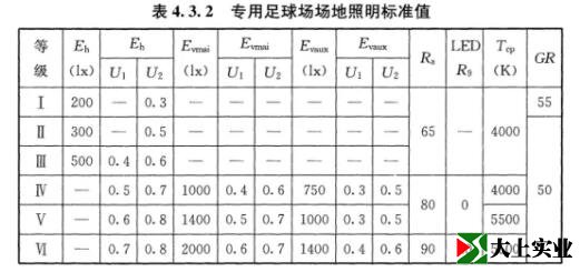 一般而言,只要是選擇了某一個合作的供應(yīng)商,都會根據(jù)上述第一個表格為主要參考標(biāo)準(zhǔn),再根據(jù)場館是否用于足球場、籃球場等某個具體的使用場地的標(biāo)準(zhǔn)值以及客戶的實際需求,在燈光照明上略有差異,這需要具體問題具體分析。下面為大家展示的是專用足球場場地照明的標(biāo)準(zhǔn)值。
