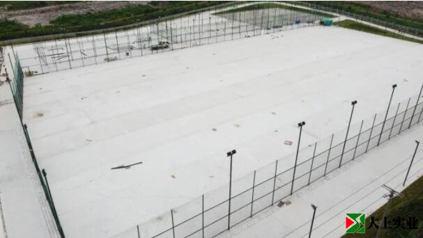 球場全景如下圖所示,右邊應該是足球場,左邊是籃球場!經緯君在周圍未找到具體的施工圖紙和說明。