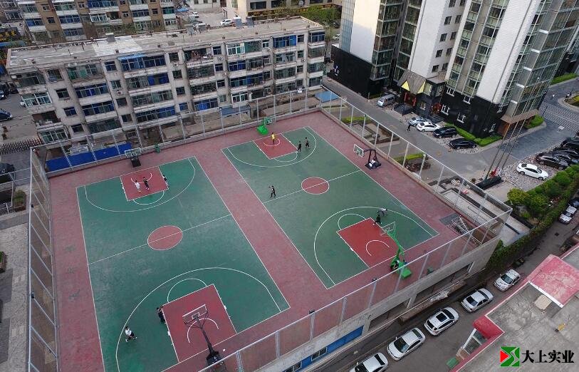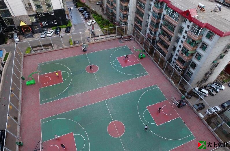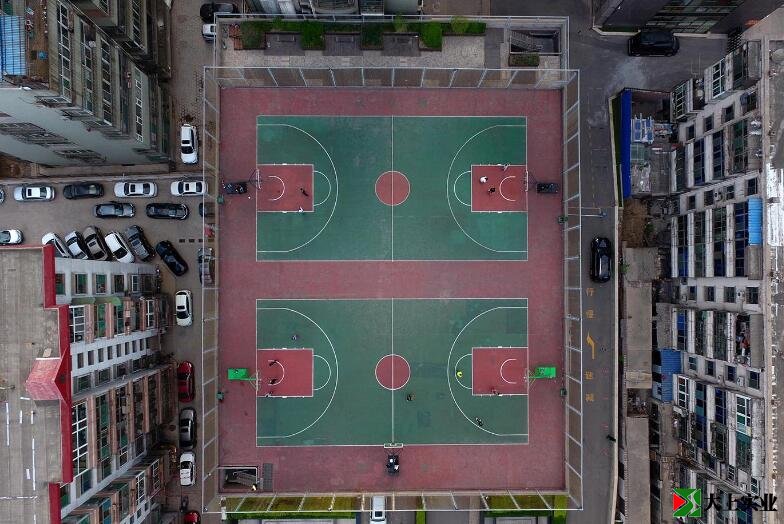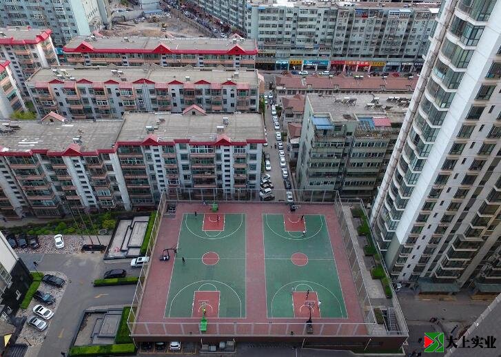 建立在小區車庫樓頂的籃球場