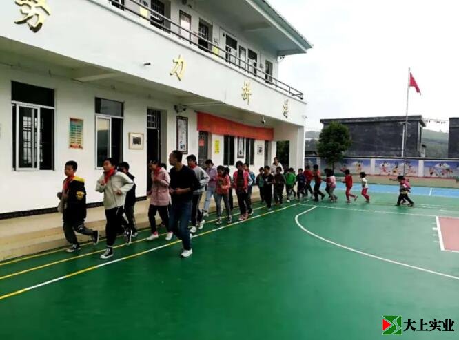 中山西區扶貧隊駐揚名村干部看著教學點幾十個留守兒童,每天在不甚平整的水泥地板上畏手畏腳進行體育鍛煉,萌生了為孩子們建設一個安全、環保的塑膠運動場的念頭。這個想法很快就得到了幫扶單位的支持,經過實地考察、立項、施工······不到半月,投資6.7萬多元嶄新的、高質量的硅PU材質學校塑膠運動場建設完成了。