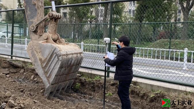 圖為工作人員正在測標高,