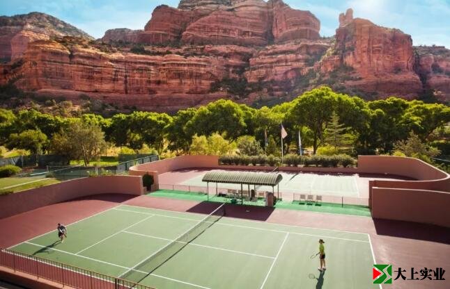 坐落在博因頓峽谷高聳的紅色巖石峭壁之間的室外硬地網球場。可以在賽后享用日落雞尾酒,然后看著周圍的峽谷變成深紅色的陰影。