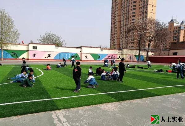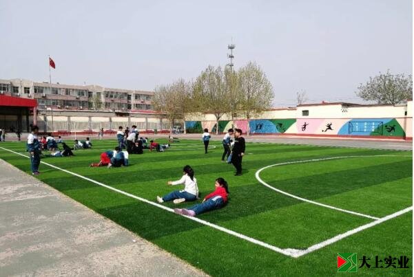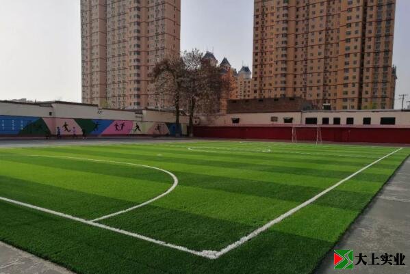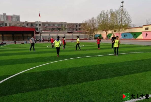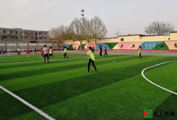 此次修建的是標準的“五人制”足球場,長37米,寬22米,總投資近10萬元。經過3天清明節假期趕工,一個按照五人制比賽標準設計建造的全新足球場正式落成。人工草坪足球場有兩條邊線、兩條球門線、兩條禁區線以及中線和中圈均為白色,草坪草綠與淺綠相間,線條清晰,色彩鮮明。