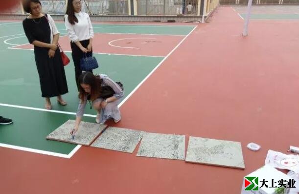 家長代表參與見證黃埭實驗小學塑膠跑道、籃球場等成品取樣和封存