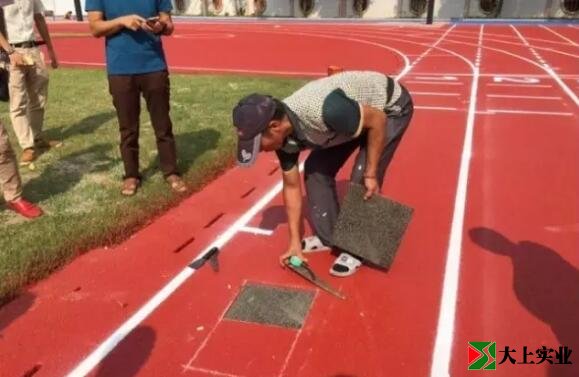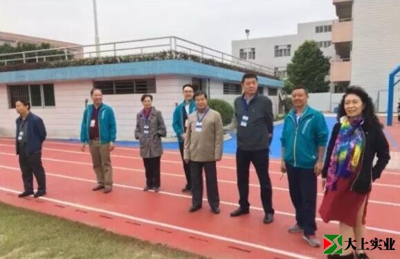 由施工方、工程監理、學校、村委領導、家委會代表組成的運動場塑膠質量檢測送檢現場