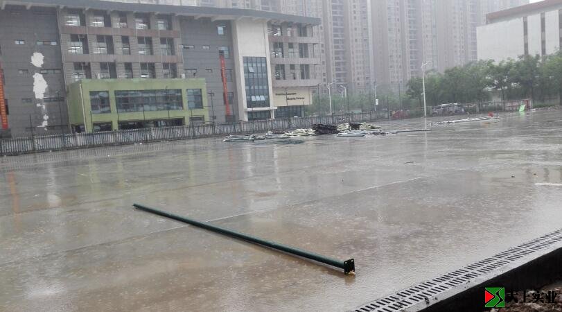 角球線,從圍欄網外向里看,三輪車還在勞作。